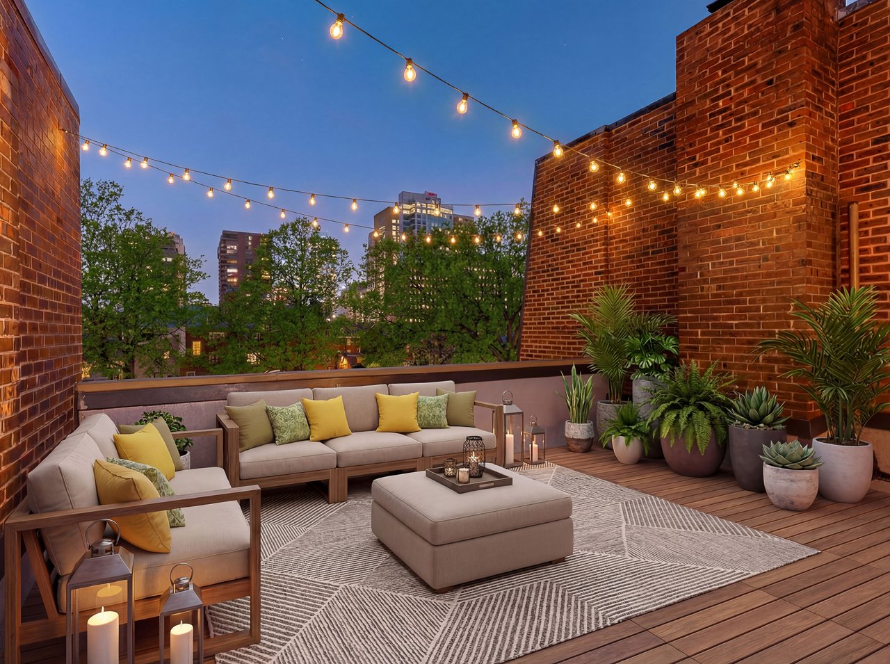 The top level offers a private third bedroom with its own bath and walk-in closet, along with access to a rooftop terrace. From this level, enjoy sweeping skyline views, including the iconic Benjamin Franklin Bridge, while the architectural skylight continues to bring natural light deep into the home.