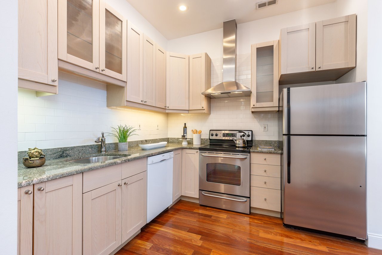 The bathroom was fully renovated in 2020 and brings a clean, modern feel with elevated finishes and smart storage solutions that support both design and function. The residence includes a recently replaced ventless washer and dryer, a 2022 water heater, and centralized HVAC providing both heating and air conditioning—ensuring comfort in every season and peace of mind.