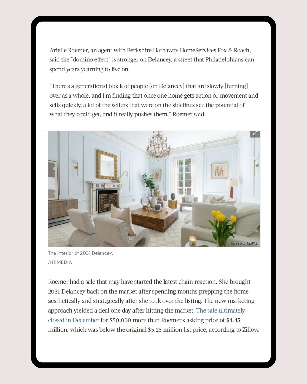 Arielle Roemer represented the buyers, describing the negotiations as "fierce" in a social media post touting the sale. Read more
